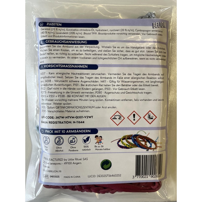 - 🌿 WIRKSTOFFE NATÜRLICHEN URSPRUNGS : Hergestellt aus Geraniol, Javazitronengras, Lavendel und Eukalyptus – pflanzliche Extrakte, die für ihre abwehrenden Eigenschaften bekannt sind. Unsere Armbänder sind sicher für Kinder und bieten eine natürliche Alternative zu aggressiven chemischen Produkten – für sanften und langanhaltenden Schutz.