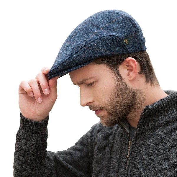 Mucros Weavers Irish Trinity Flat Cap, Irish Hat for Men, Newsboy Hat (Large, Col 34 Blue Herringbone)