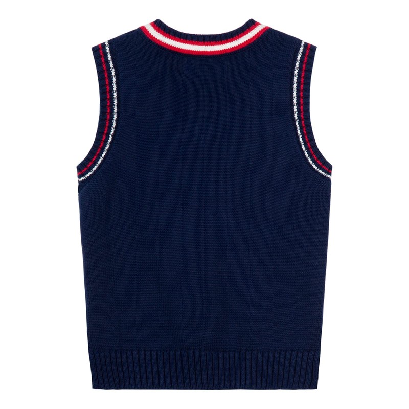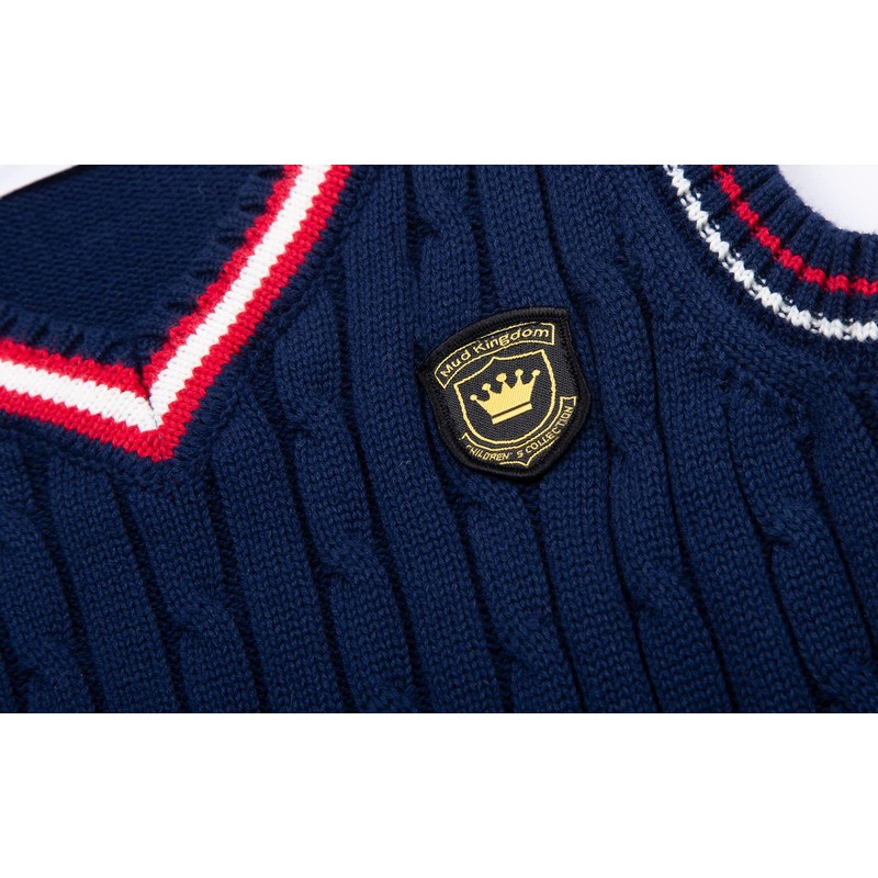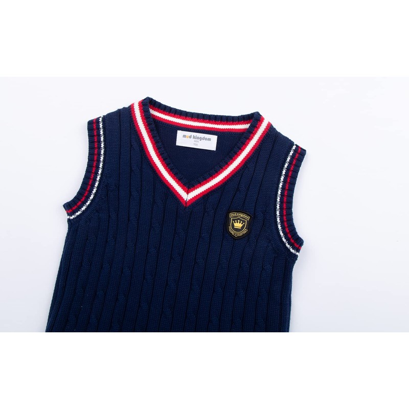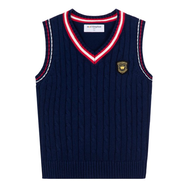 Mud Kingdom - Chaleco de punto de algodón con cuello en V para niños y niños pequeños, Azul marino, 7-8