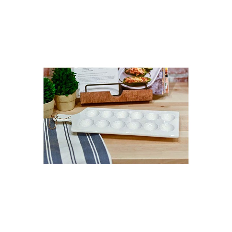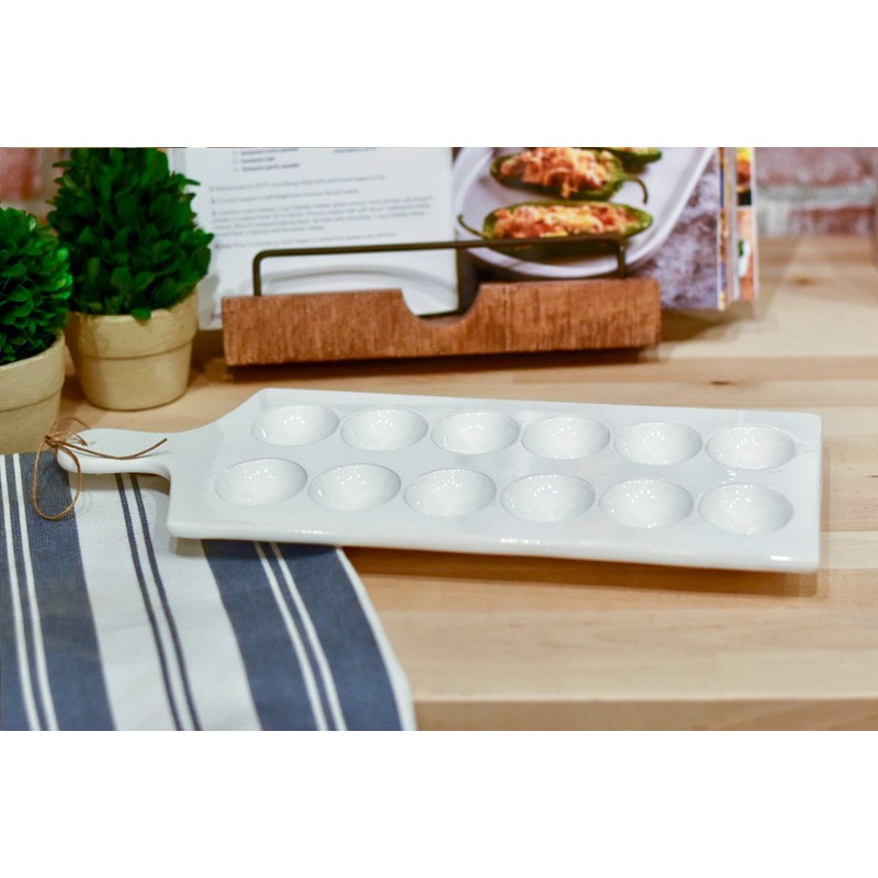 Mud Pie - 40700083 Mud Pie Deviled Egg Tray, 15.25" x 7", White, Brown, Black