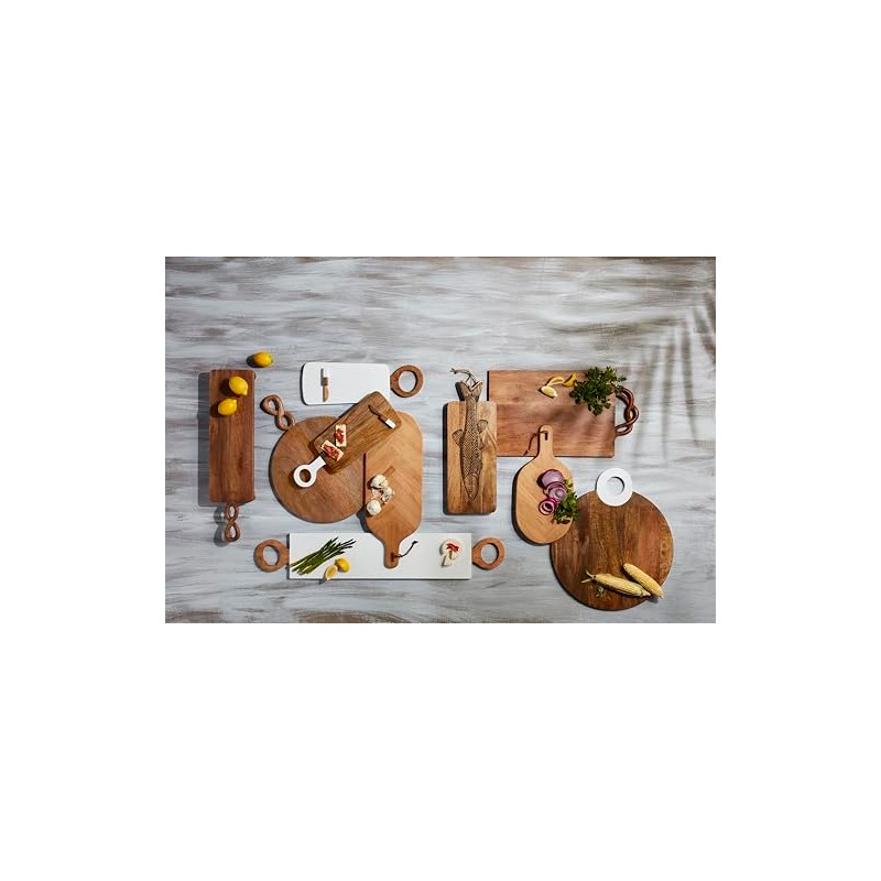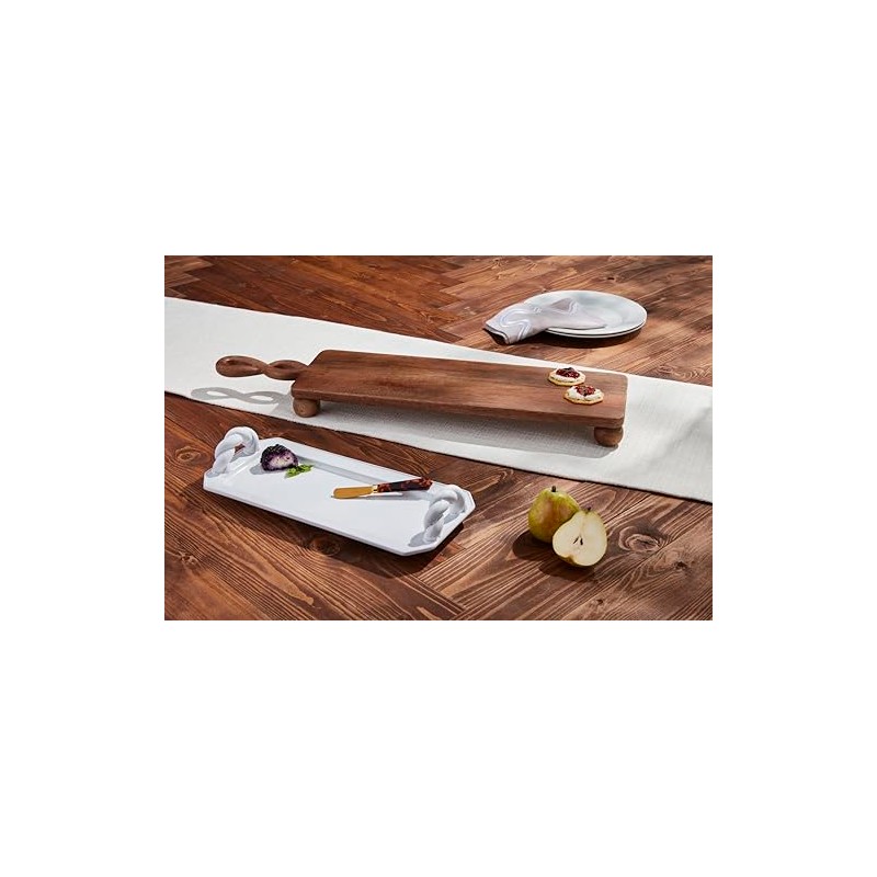 Mud Pie 7" x 28" Footed Twisted Handle Board, Brown