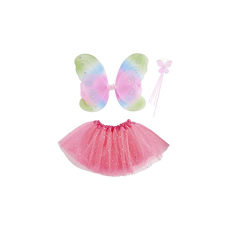 • 3-piece set. Light-up glitter mesh tutu comes with matching fairy wings and wand. Batteries included. One size fits most.