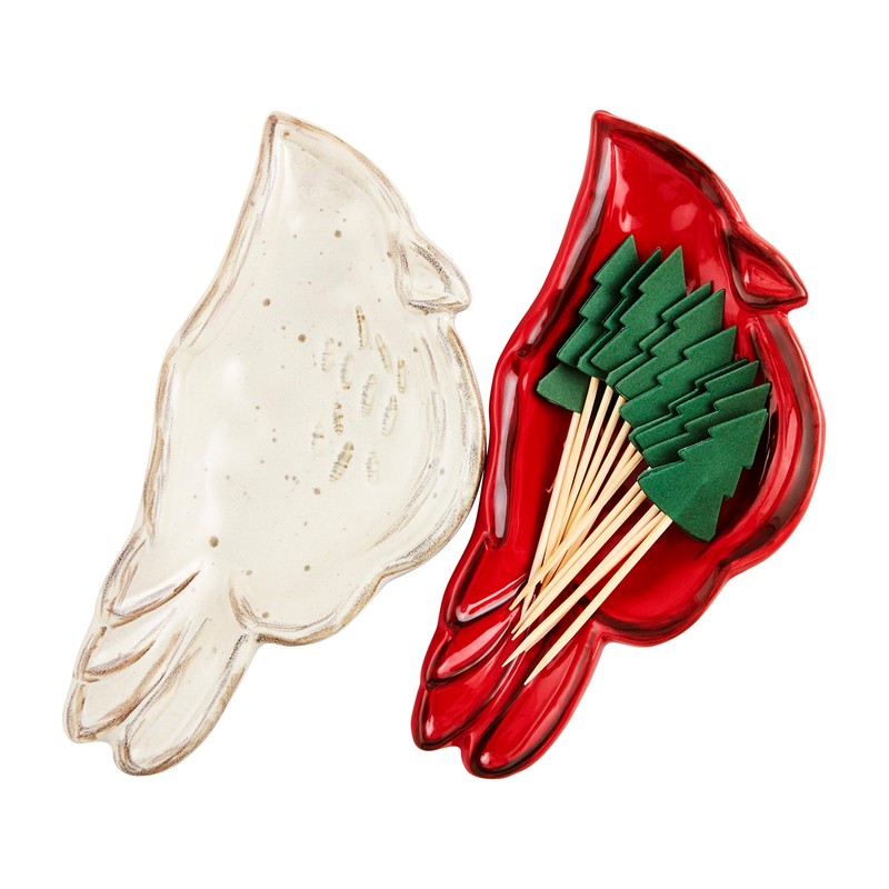 Mud Pie Cardinal Tidbit, dish 5 1/2" x 3" | toothpick 3 1/4", Red