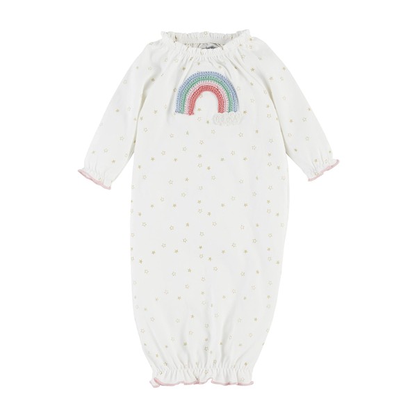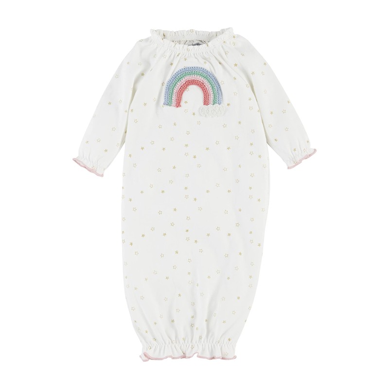 • Jersey sleep gown features crochet rainbow appliqué.