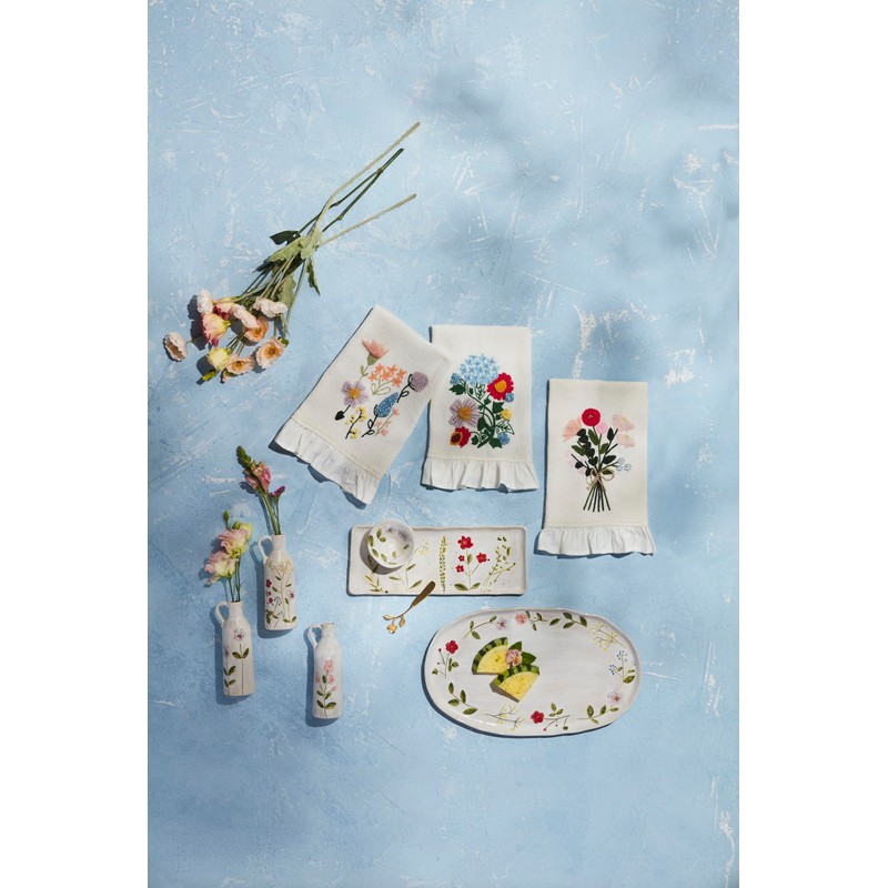 Mud Pie Flower 10 1/4" x 17" PLATTERS & TRAYS, White