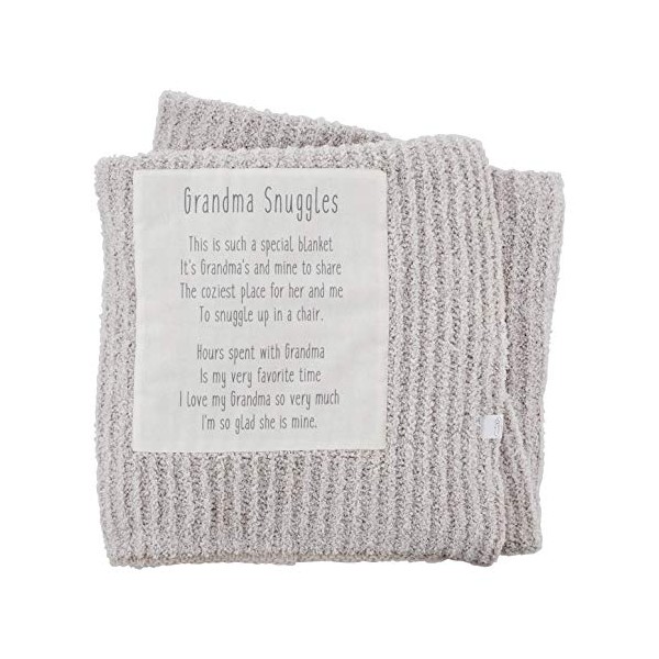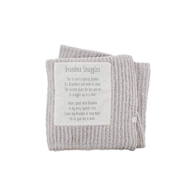 - Made of super soft and snuggly gray chenille fabric, this blanket has a satin patch with a printed poem about snuggling with grandma.