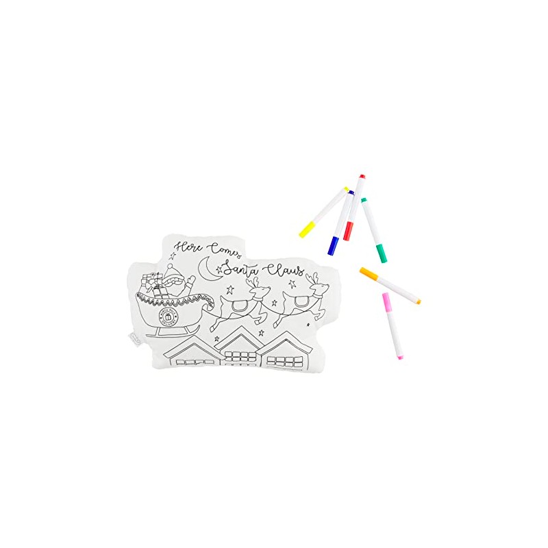 - Create your own colorful pillow with our Here Comes Santa Doodle Pillow. The two-piece set comes with a canvas pillow. The pillow comes with pack of six non-toxic markers. This pillow is intended for ages 3 and older. Color in each section to create a beautiful Christmas image. This pillow should be spot cleaned only. The exterior is made from 100% Cotton. The stuffing is made from 100% Polyester.