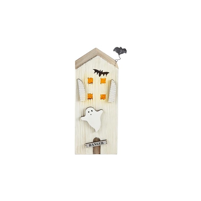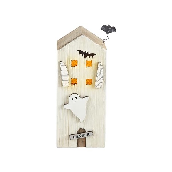 - The Danger LED Wood Haunted House is a spooky Halloween decoration made from high-quality pine wood