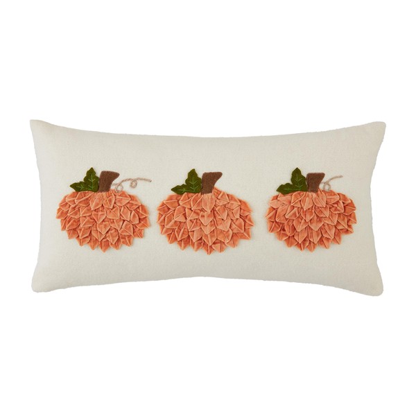 Mud Pie Lumbar Velvet Pumpkin Pillow, 10" x 21", White