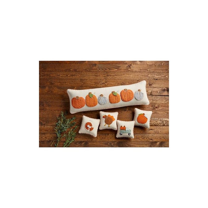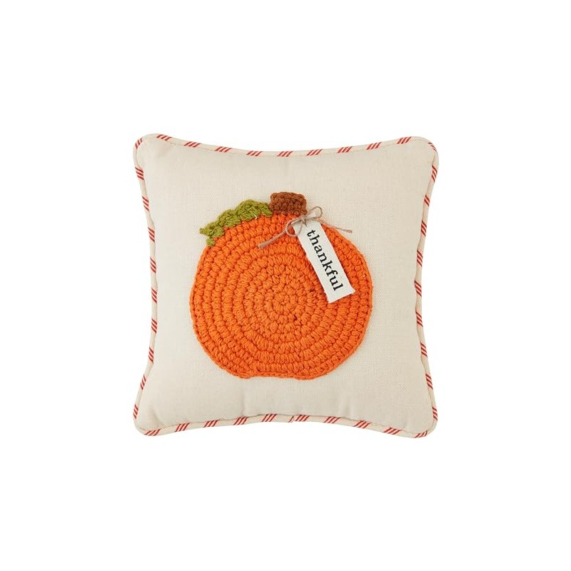 Mud Pie Pumpkin Tgiving Crochet Pillow, 8" x 8", Orange