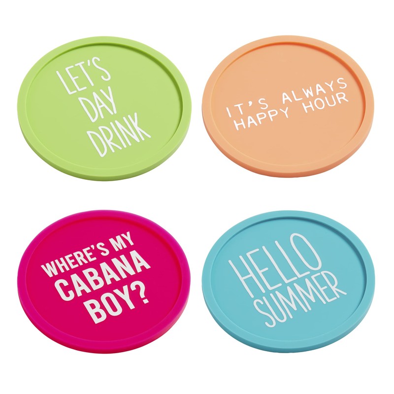Mud Pie Silicone Pool Coaster Set, Multicolor, 4 1/4" Dia