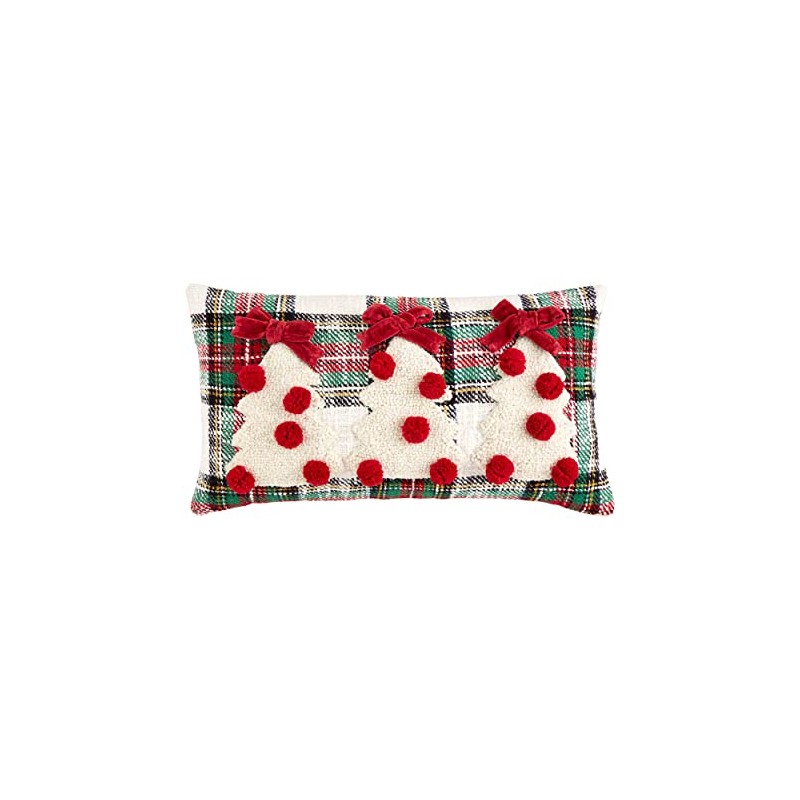 Mud Pie Tartan Hooked Lumbar Pillow, 12" x 22", Green