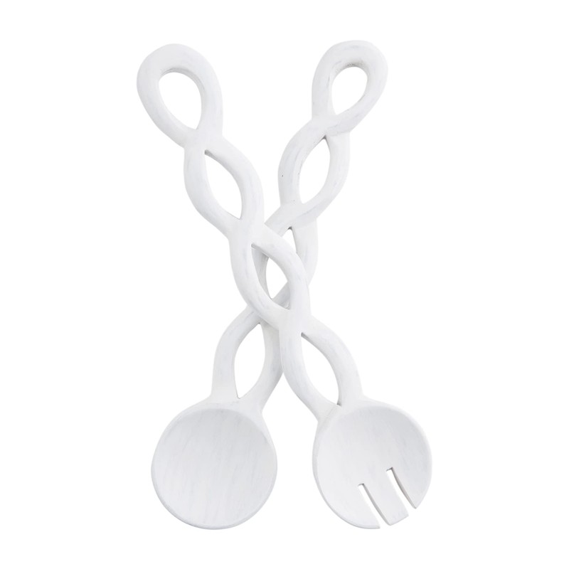 - This twisted serving utensil set takes a modern twist on utensils. The set comes with two mango wood serving utensils. Each serving utensil features twisted handles. This set comes with one spoon serving tool and one fork serving tool. These utensils are perfect for mixing and serving salad.