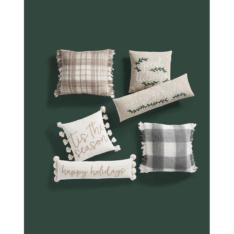 Mud Pie White and Gold Christmas Pillow, Tis' The Season