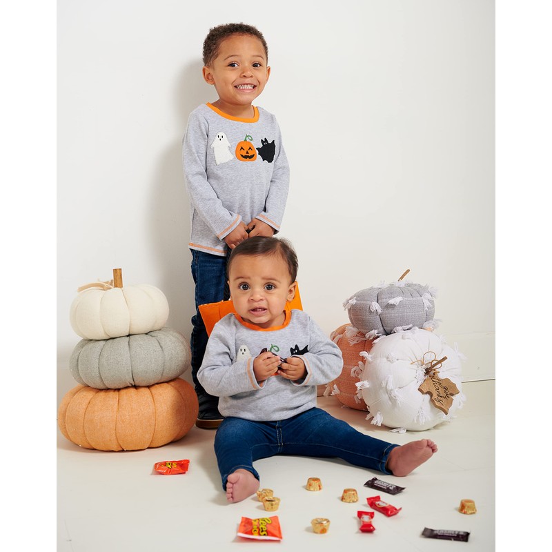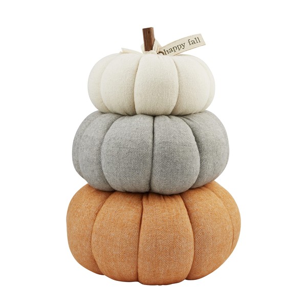 Mud Pie, White, Gray, Orange, Three Stack Pumpkin Table Sitter, 15" x 10" Dia, Assembled
