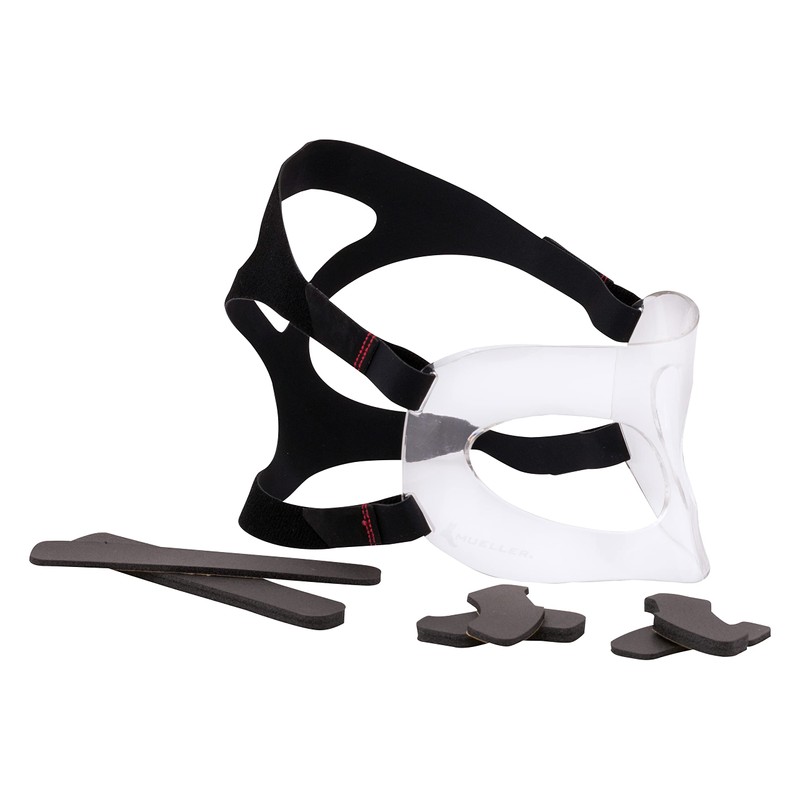 - Proprietary occipital harness with adjustable straps comfortably secures the face guard and prevents shifting