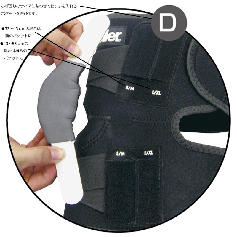 - クリスクロスストラップ:ひざ前方上下に配置、伸縮力が密着度を高める構造