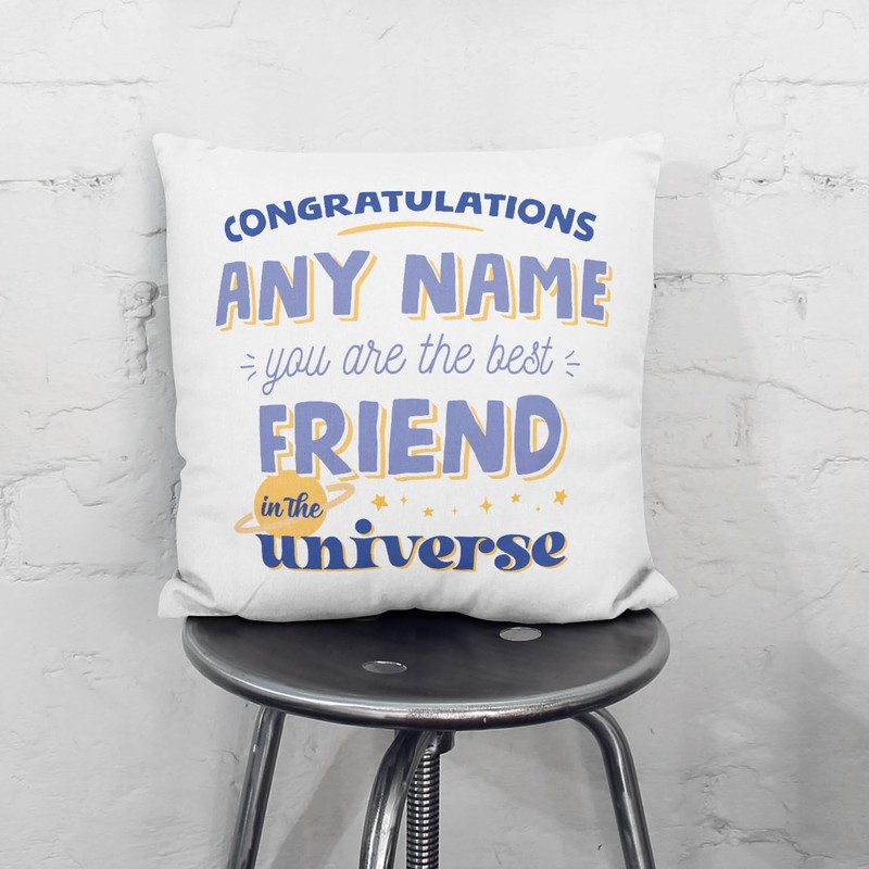 MUGFFINS FRIEND Cushion Padding included - in English - Best in the Universe - Funny gift - Pillow: cover and filling 15.7x15.7 inches