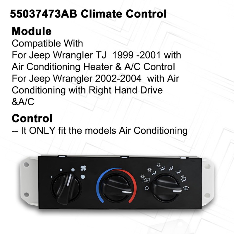 MuHize 55037473AB Heater Climate Control Module Panel, A/C Control Switch Compatible with for 1999-2004 Jeep Wrangler TJ Replace # 55037473AA 55056559AA HS-373