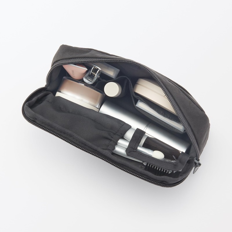 MUJI 84473937 Wrinkle Nylon Large Opening Pouch, Dark Gray, L 7.1 x 4.5 x 2.8 inches (18 x 11.5 x 7 cm)