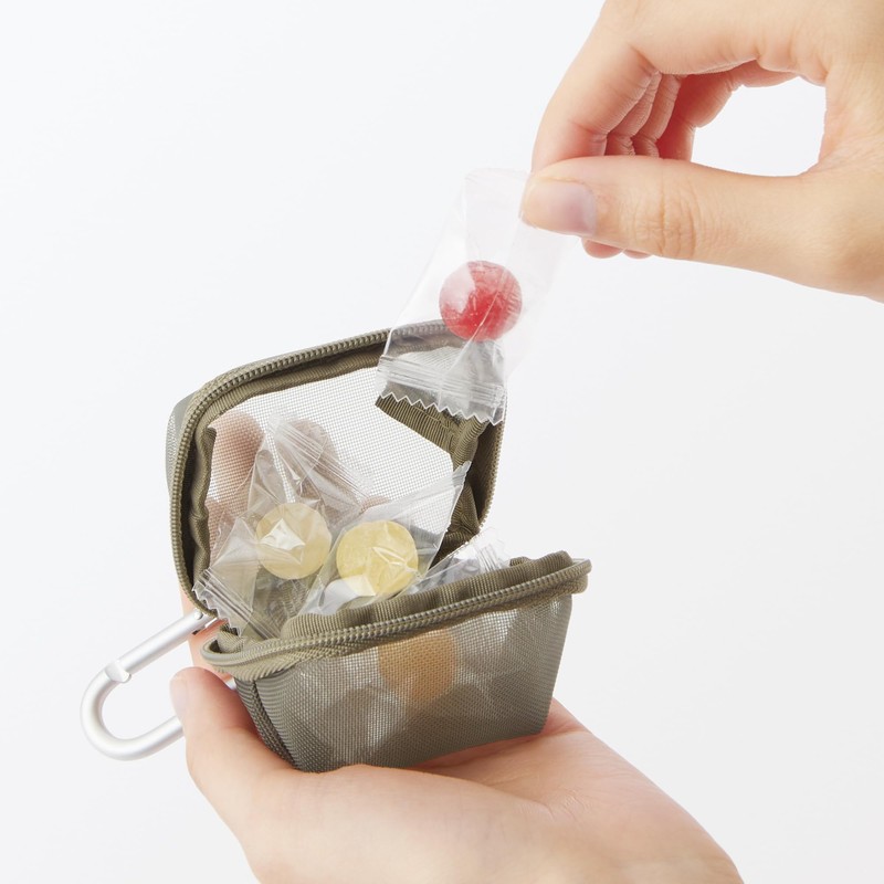 Muji 84475573 Nylon Mesh Compact Pouch, Khaki, Approx. 2.8 x 2.4 inches (7 x 6 cm)