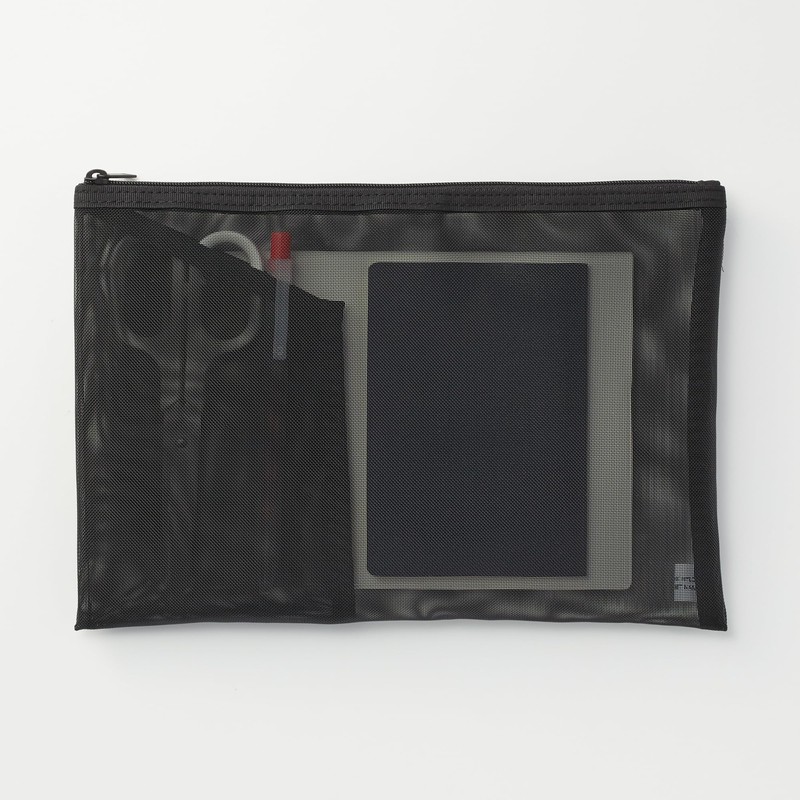 MUJI NDD45A9A Nylon Mesh Case with Pockets Black for A5 Size