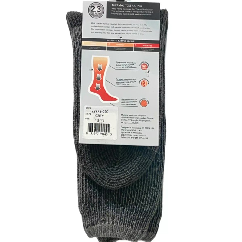 Muk Luks Heat Retainers Men 10-13 Thermal Insulated Socks Gray Classic Rib