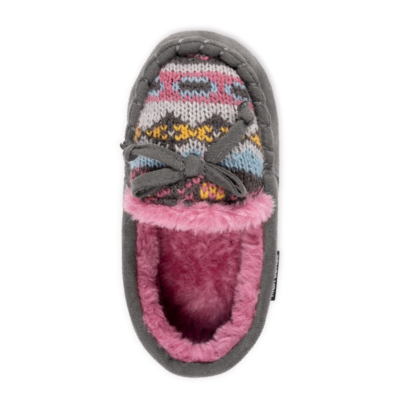 MUK LUKS Patterned Moccasins, Dark Grey Heather, Large Unisex Little_Kid