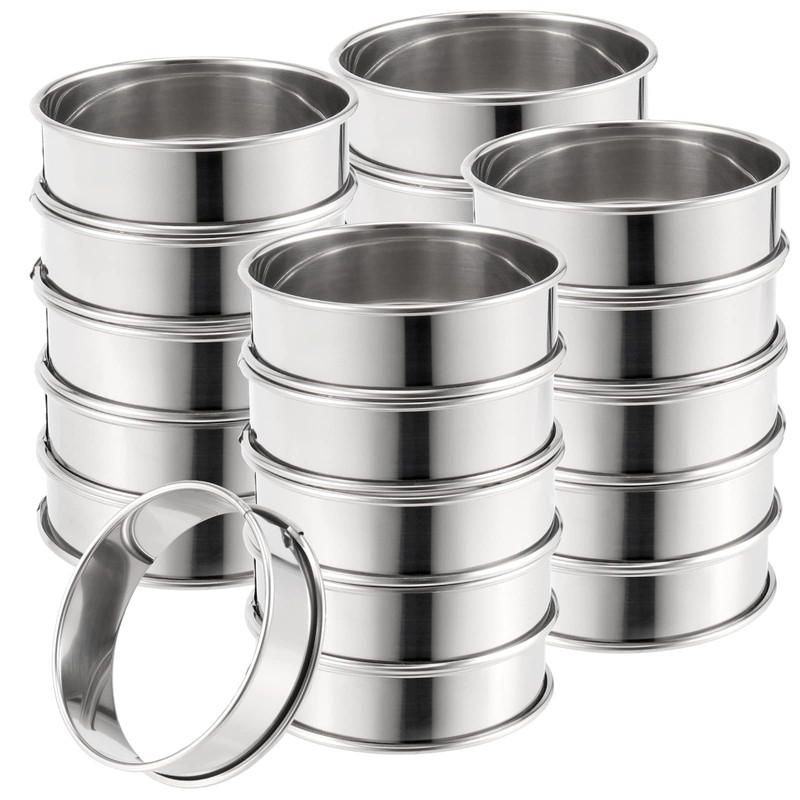 MUKCHAP 20 anillos ingleses de 3.15 pulgadas, anillo de doble rollo de acero inoxidable, molde de anillo para hornear en casa, cocinar
