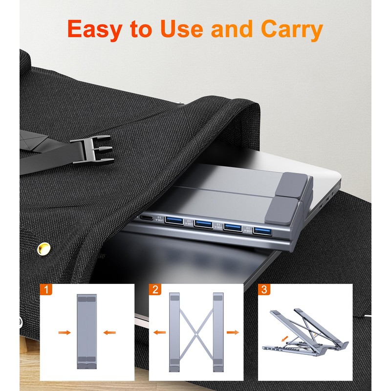 - 【4 Ports USB A 3.0 Hub】Mukiya USB hub laptop stand extends your device with 4 additional USB A 3.0 ports, ideal for connecting USB peripherals such as flash drive, mouse, keyboard, printer or hard drive to your MacBook Pro, MacBook Air, Dell, and HP laptops without any lag.