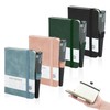 Mulaibdin 4 Pack Pocket Notebook, A7 Notebooks with Pen, Small Journal Leather Notepads Hardcover Mini Cute Notebooks Holder Page Marker Ribbons for School Office Memos Supplies 4.3” x 3.2” 200 Page