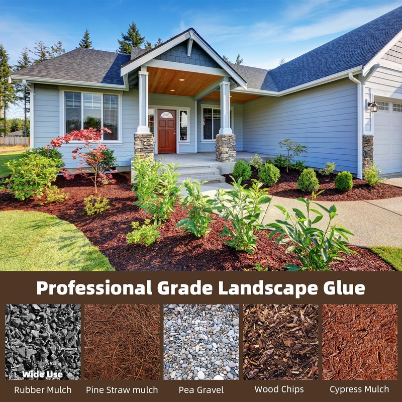 - 【Fast-Drying Mulch Adhesive】Bonds in 12-24 Hours & Lasts 12+ Months! Our heavy-duty mulch glue for landscaping creates an ultra-strong, weatherproof bond for wood chips, gravel, rocks, and pine straw while remaining pet-safe and non-toxic. The eco-friendly, water-permeable formula prevents washouts on slopes, pathways, and garden beds without harming plants—ideal for long-term erosion control and landscape stabilization.