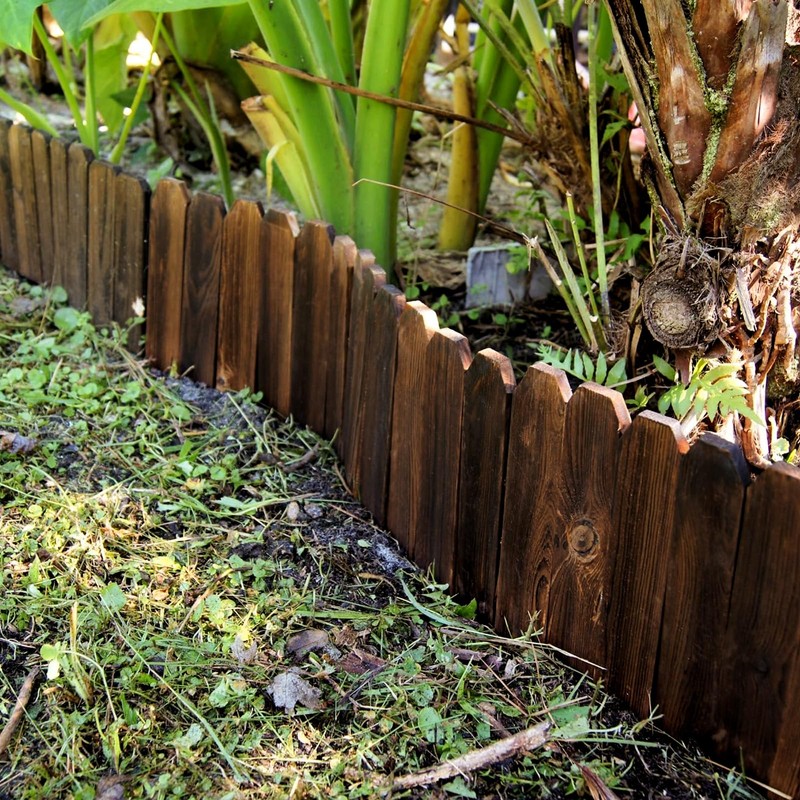 Whether you're defining flower bed border edging, creating neat landscaping borders, or adding structure to your lawn, these versatile garden fences can be easily connected to form circles, squares, or custom shapes. The natural dark brown finish with visible wood grain adds a decorative garden fencing touch, blending seamlessly into any landscape border edging design.