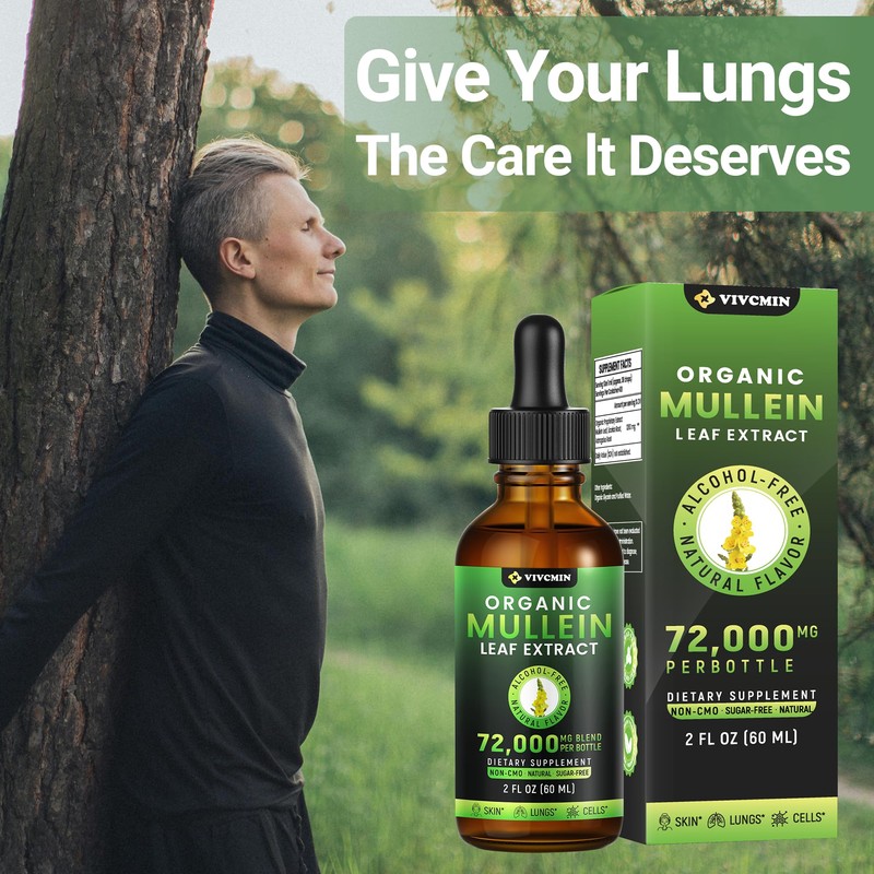 - Traditional Herbal - Mullein leaf which has been renowned for its remarkable beneficial effects on the lungs for centuries. Each drop of vivcmin Mullein Extract delivers powerful lung benefits that are unparalleled