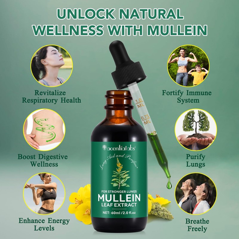 - Mullein Drops: Enhance Lung Function - Our mullein leaf extract is a traditional herbal remedy renowned for its powerful benefits to respiratory health and overall lung function. Experience easier breathing, improved lung capacity, and a renewed sense of vitality.