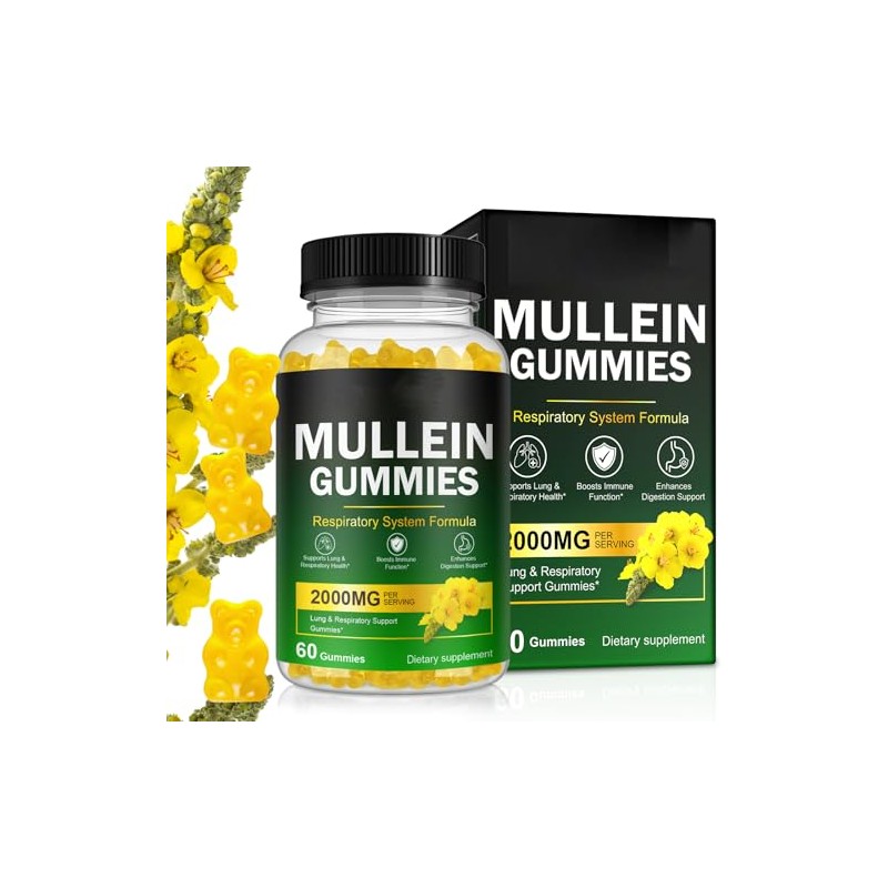 - Mullein Gummies - Mullein Leaf Extract for Lungs, Mullein Leaf Gummies 2000mg