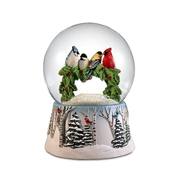 Multi Birds on a Wreath Water Globe San Francisco Music Box