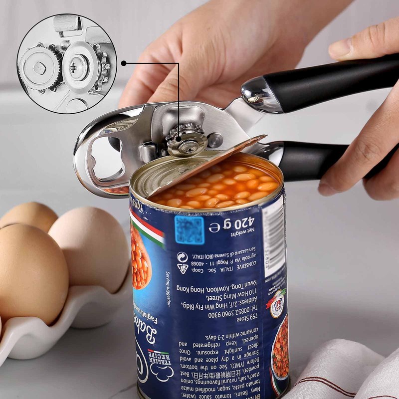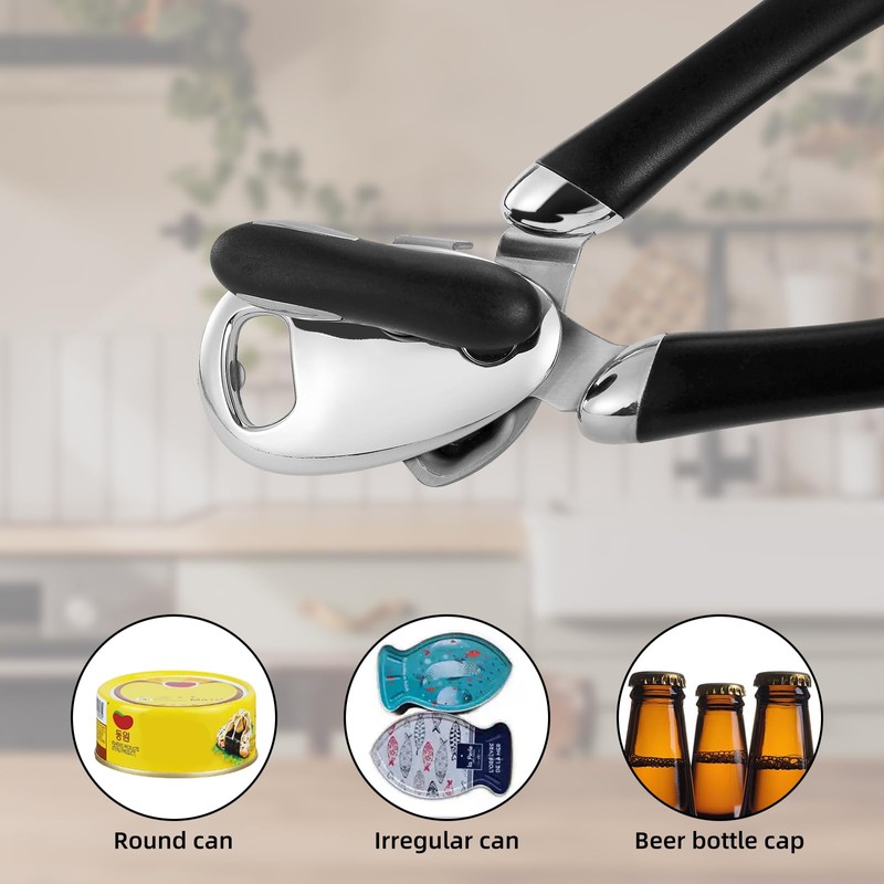 - Sturdy Construction: Built with durable materials, this can opener is made to last through countless uses. Food safety High strength high hardness alloy high carbon stainless steel cutting blades stay sharp, suitable for opening cans of all sizes and can be safely in direct contact with food. After use, it can be cleaned in the sink or dishwasher, stainless steel tableware will never rust, and it will be a reliable tool in your kitchen for years to come