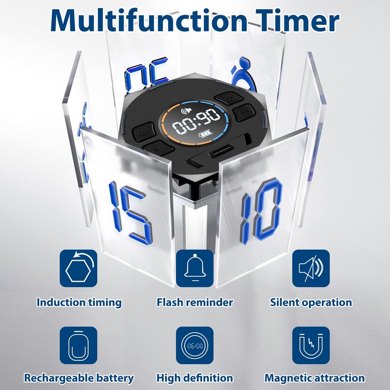 Multi-Hexagon Pomodoro Timer, Digital Cube With Various Time Presets, Magnetic Visual & Flip Focus, Rotating Display, Silent & Alarm, Count Up & Countdown for Classroom, Cook, Gym, Office