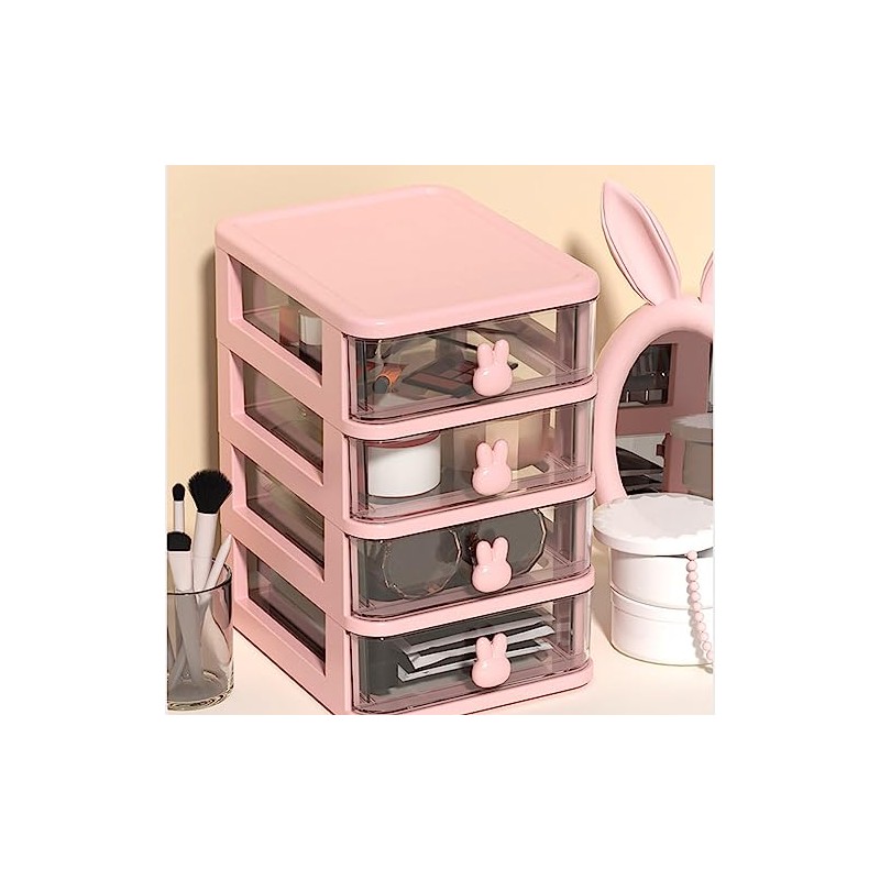 Wide application: this plastic storage drawer is suitable for storing your books, pens, tapes, office supplies, etc. Rabbit handle: this plastic drawer organiser with super cute rabbit shape handle is easy to use. SUITABLE FOR This desk storage box with transparent design is suitable for your friends and family.