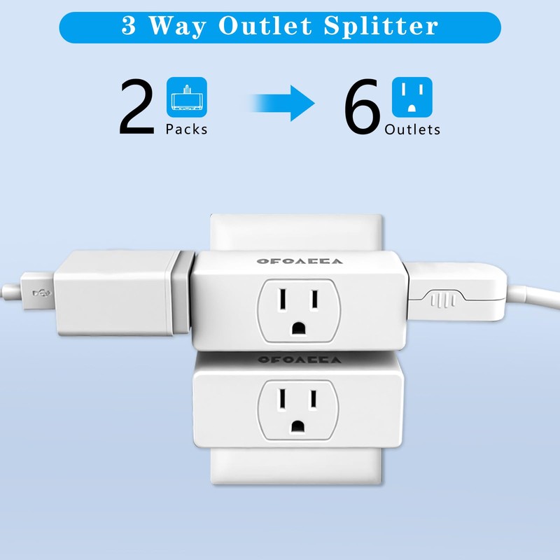 - MULTIPLE OUTLET WALL PLUG :The outlet splitter extends 1 outlet to 3 AC outlets. Charge multiple devices at the same time without blocking other outlets, connect your laptop, cell phone, camera, shaver and more.