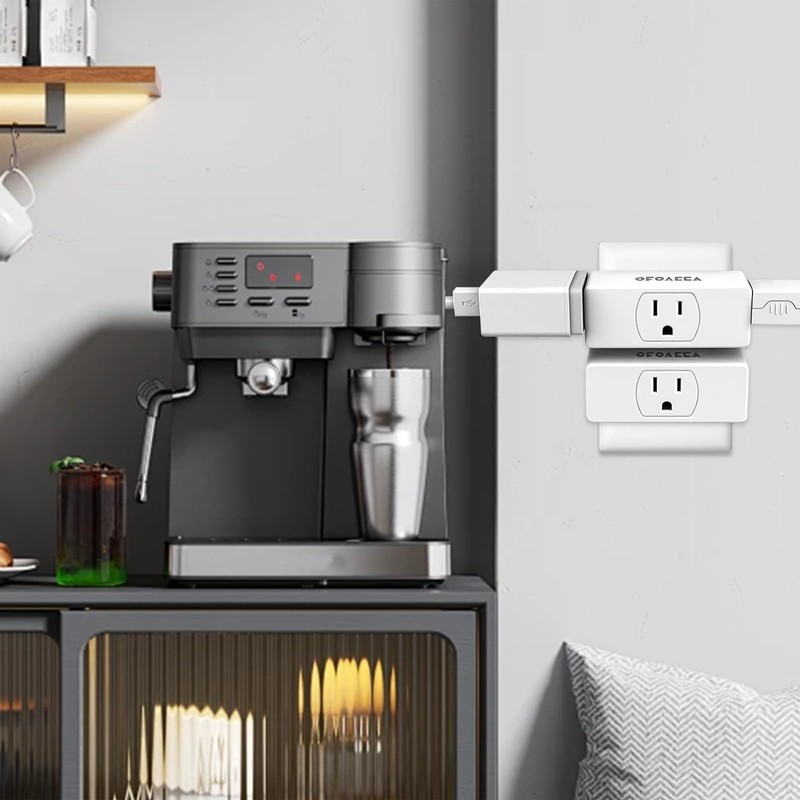 - NON-BLOCKING DESIGN: The 3 way plug adapter holders are located on three different sides, which can accommodate 3 large plugs at the same time without blocking the neighboring sockets, say goodbye to bulky power strips and enhance the elegance of your home.