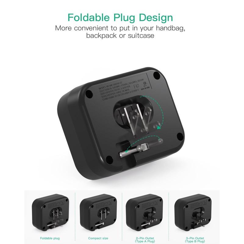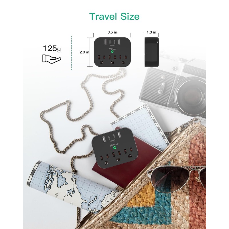 - Foldable Plug, Portable Travel Size: Only meausres 2.75*3.42*1.29", this outlet extender with foldable plug can be more easily to store in your handbag, backpack or suitcase, ideal choice for travel and business trip.