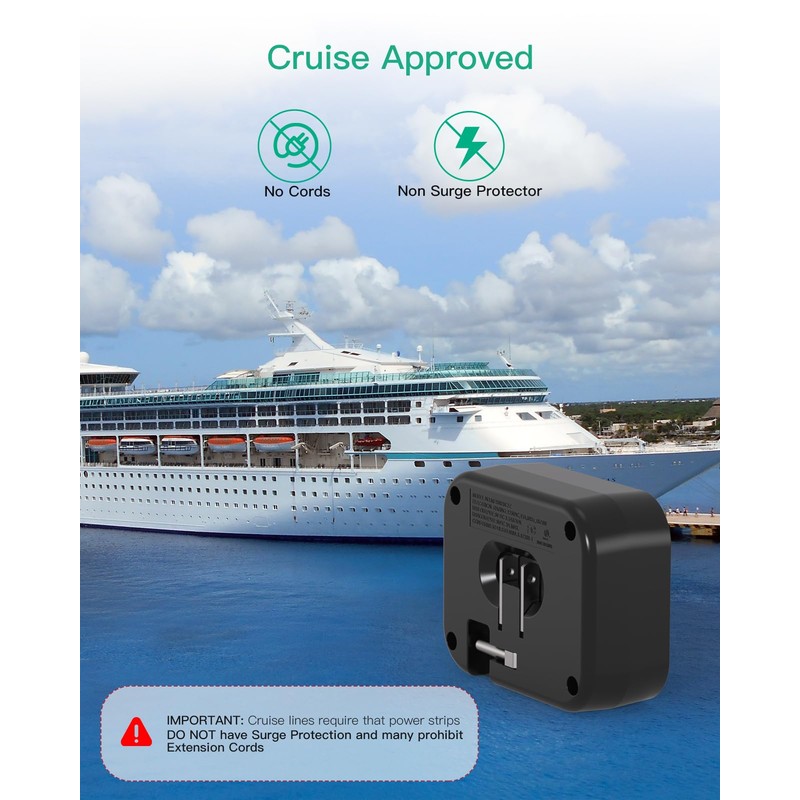 - Cruise Ship Essentials: Our Power Strip has no surge protection as many cruise lines ban surge protectors due to safety concerns. No extension cord is required by most luxury cruise ships.