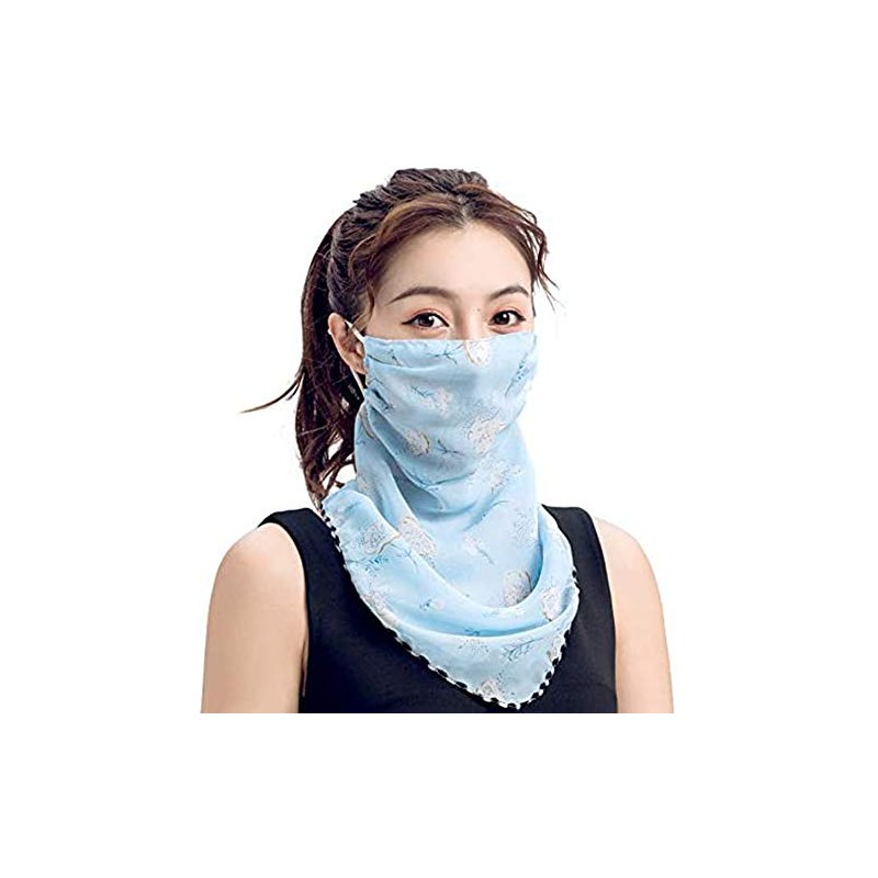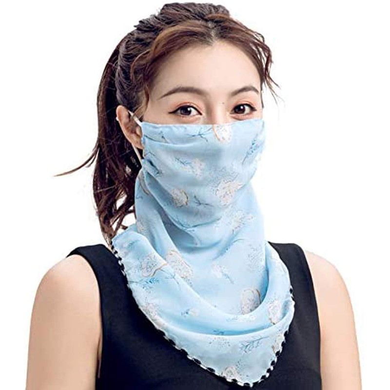 Multi Purpose Chiffon Face Scarf - Reusable Face Cover with Ear Loops, Fashion Mask, Neck Gaiter Bandana, Breathable Half Face Scarf for Women Lightweight, Stylish Pastel Blue