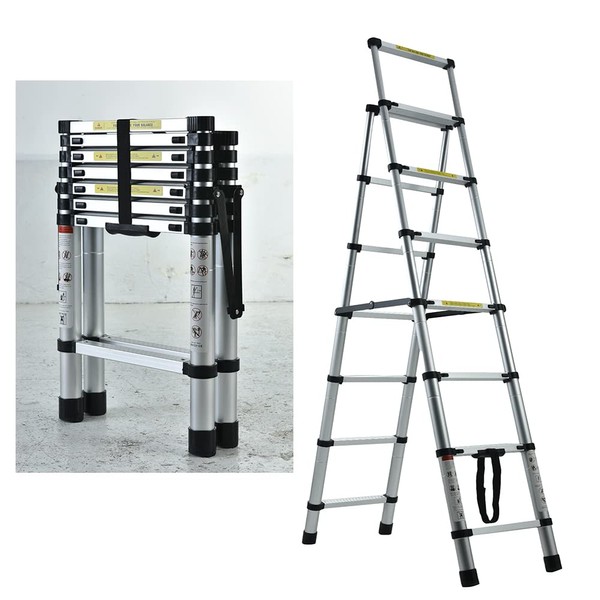 • Easy to Operate: The telescoping aluminum ladder also has One-button retraction function. Simply press the thumb buttons, this ladder will descending smoothly from it's unfolded condition to compact size. The height of step ladder can be adjusted to meet your different daily needs.