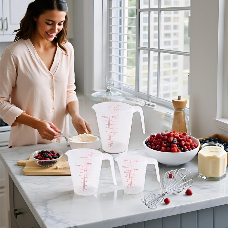 Crafted from lightweight yet sturdy, food-grade plastic, these measuring cups are built to last. They’re ​BPA-free, non-toxic, and crack-resistant, ensuring safe use for all your culinary needs. Whether measuring hot liquids (up to 80°C/176°F) or cold ingredients, these cups withstand daily wear while remaining ​lightweight and shatterproof – perfect for accident-prone kitchens!