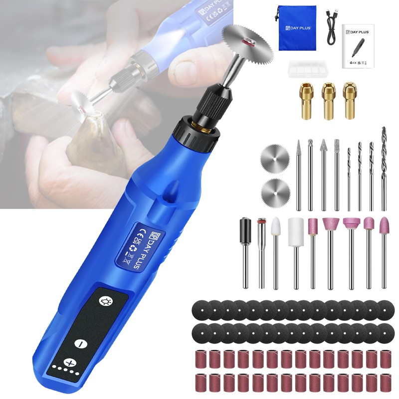 Multi-Purpose Power Rotary Tool with LED Light, Mini Cordless Rotary Tool 5 Speed Adjustment 3000/6000/9000/12000/18000 RPM, for Engraving, Sanding, Polishing, Drilling, Grinding(New Blue)