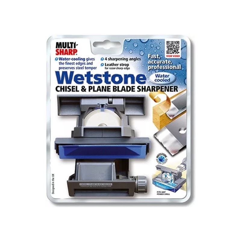 - The wetstone sharpener hones even badly damaged chisels / plane blades quickly, because it uses the high power / torque of an electric drill. The chisel clamp accurately holds the blade at the selected angle (25º to 40º) for a precision ground edge.