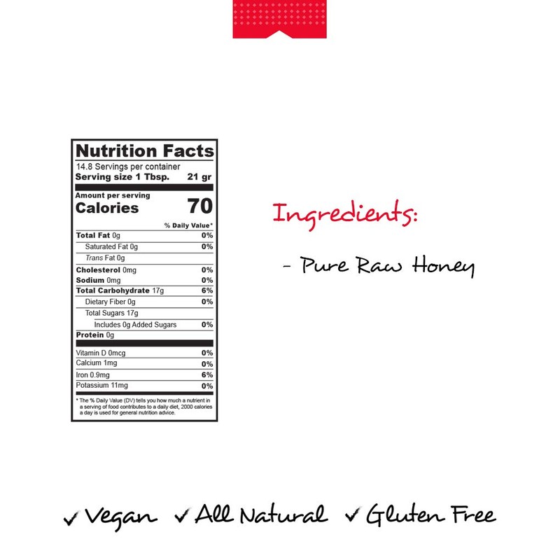 A variety of blossoms from Zacatecas and Aguascalientes, Mexico, give this extremely versatile honey its complex, but mild flavor. Delicious in baked goods, hot teas, salad dressings, and as a table condiment.